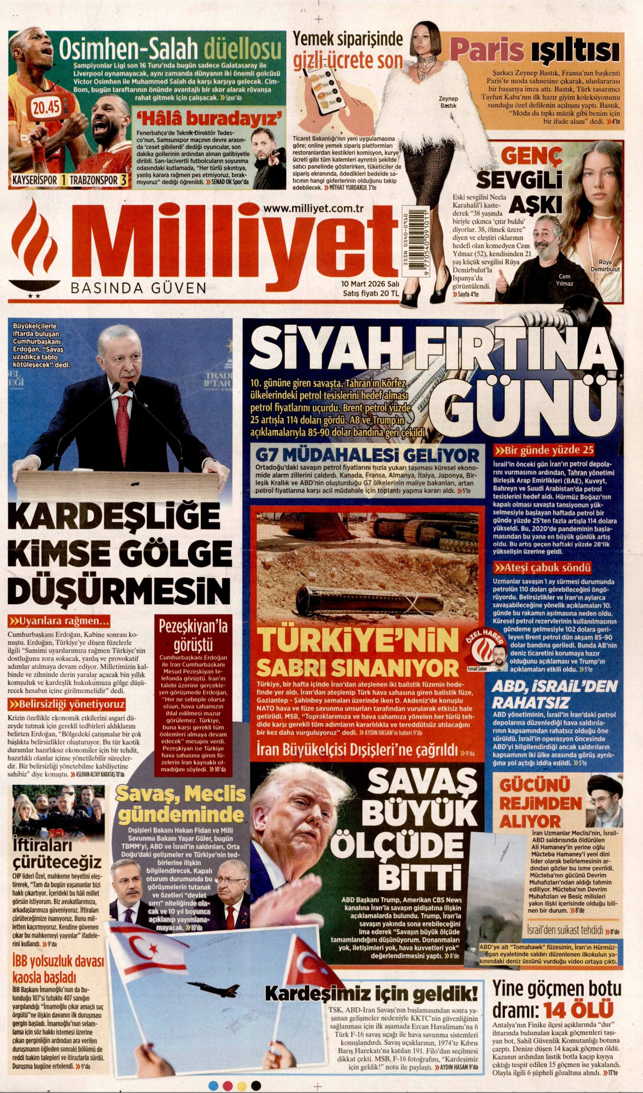 MİLLİYET Gazetesi 10 Mart 2026, Salı Günü Manşeti