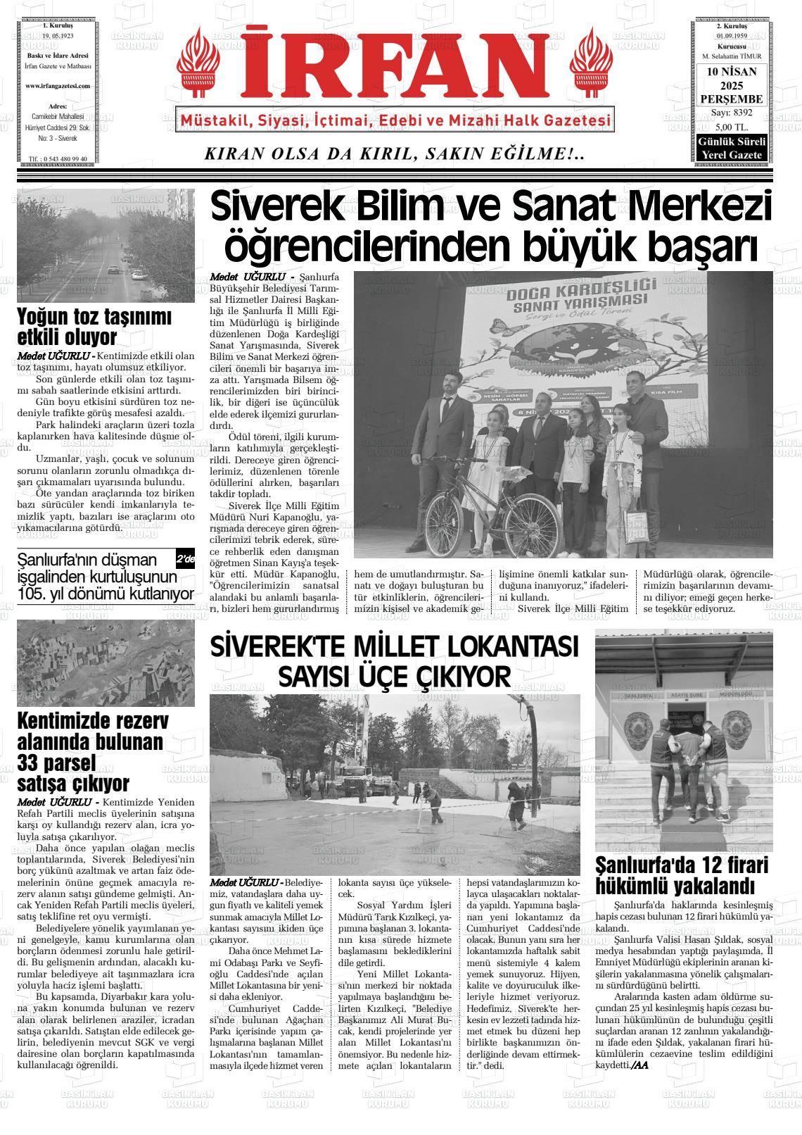 Şanlıurfa Yerel Gazeteleri 16 Aralık 2025, Salı Günü Manşeti