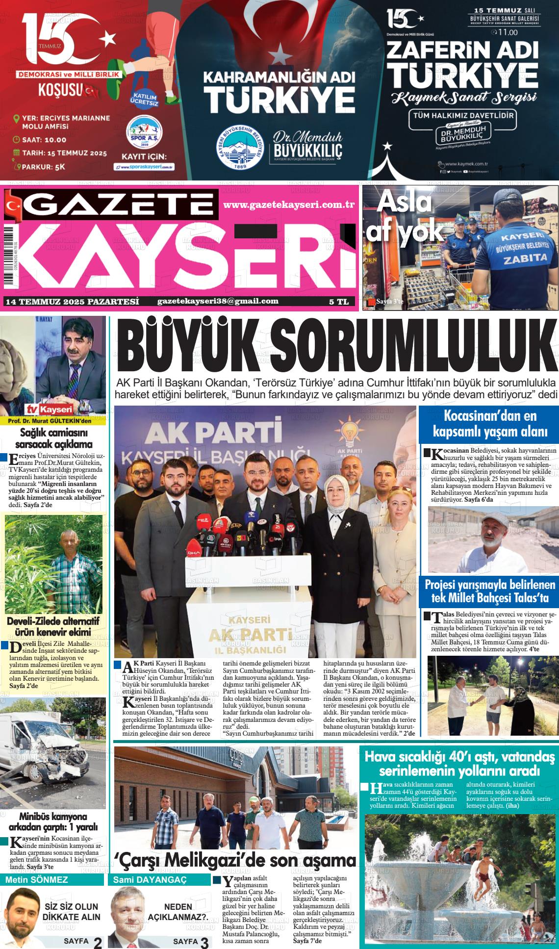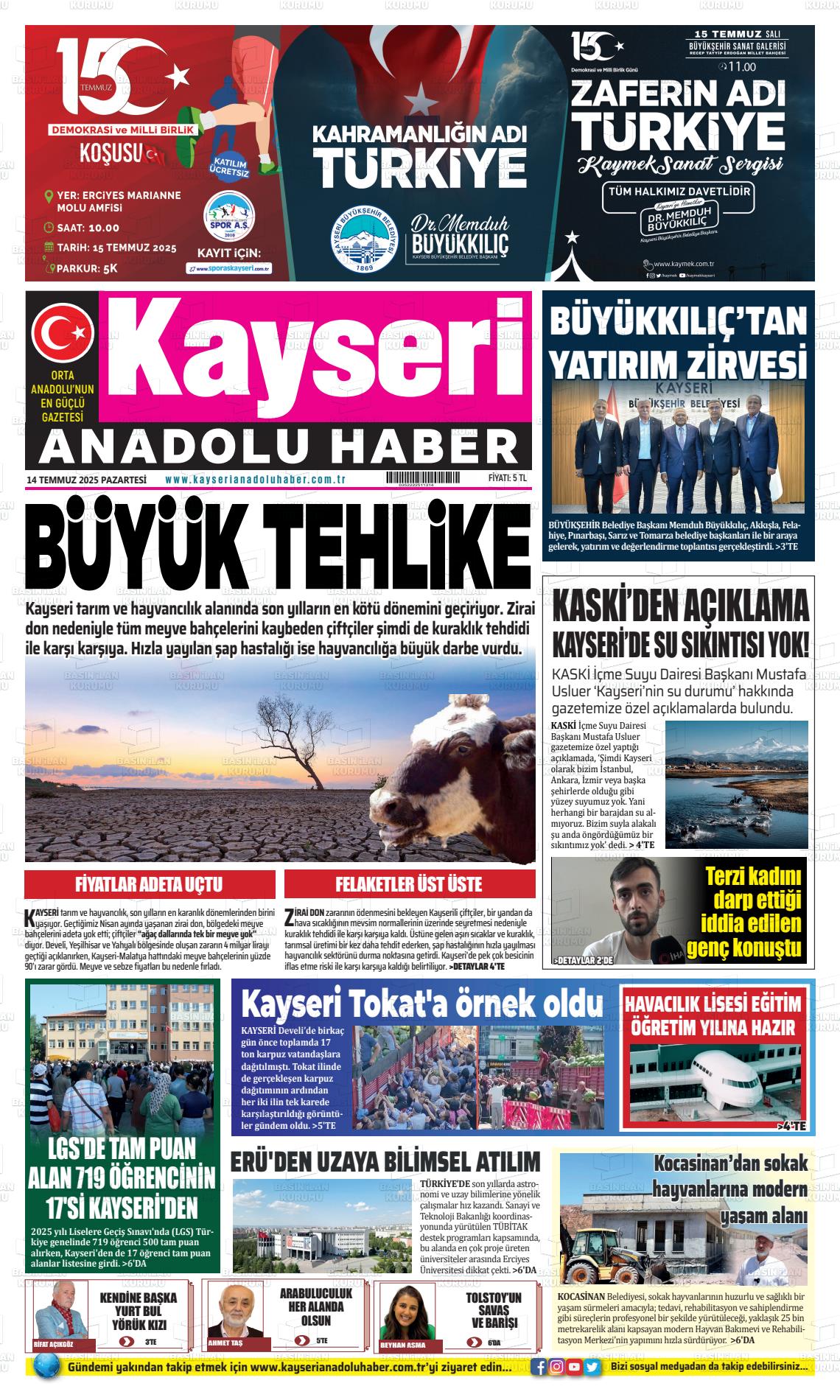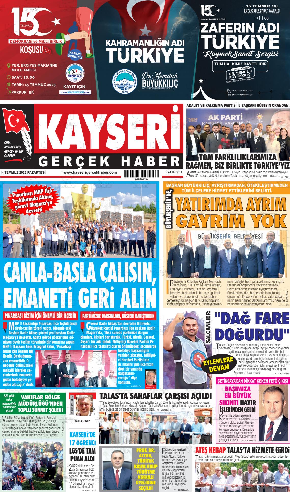 Kayserİ Yerel Gazeteleri 06 Ekim 2025, Pazartesi Günü Manşeti