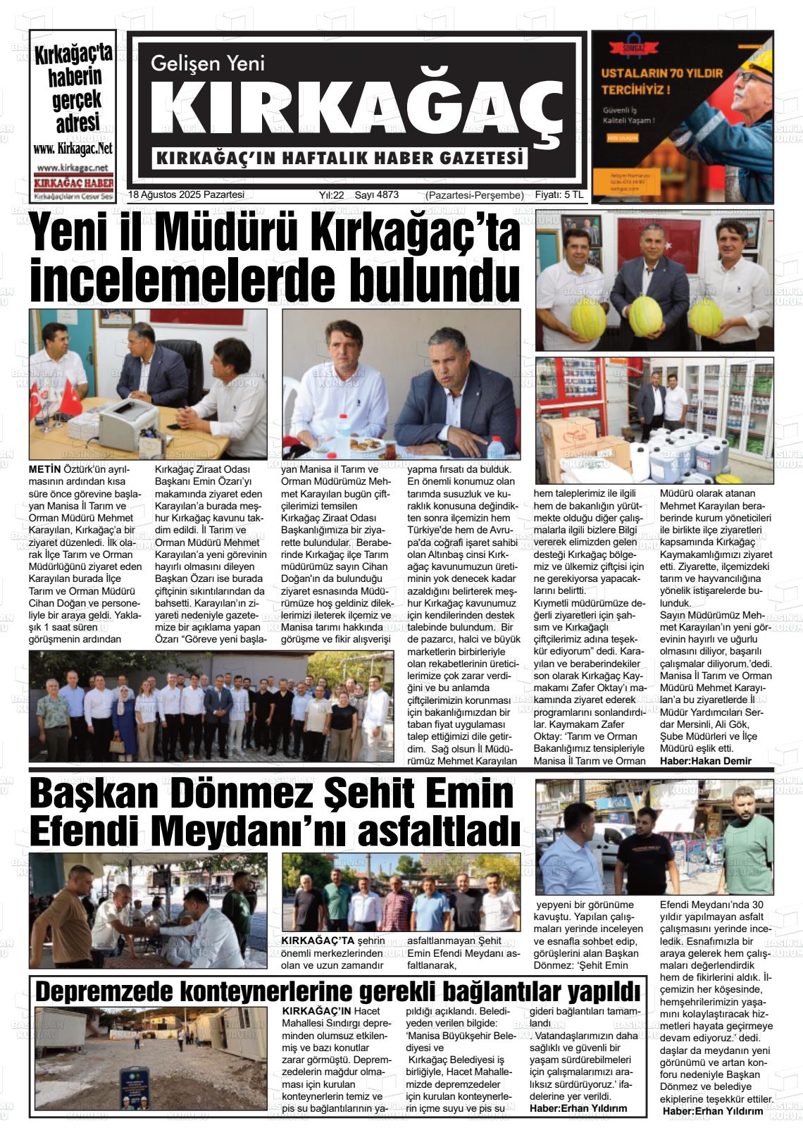Manİsa Yerel Gazeteleri 13 October 2025, Monday Günü Manşeti