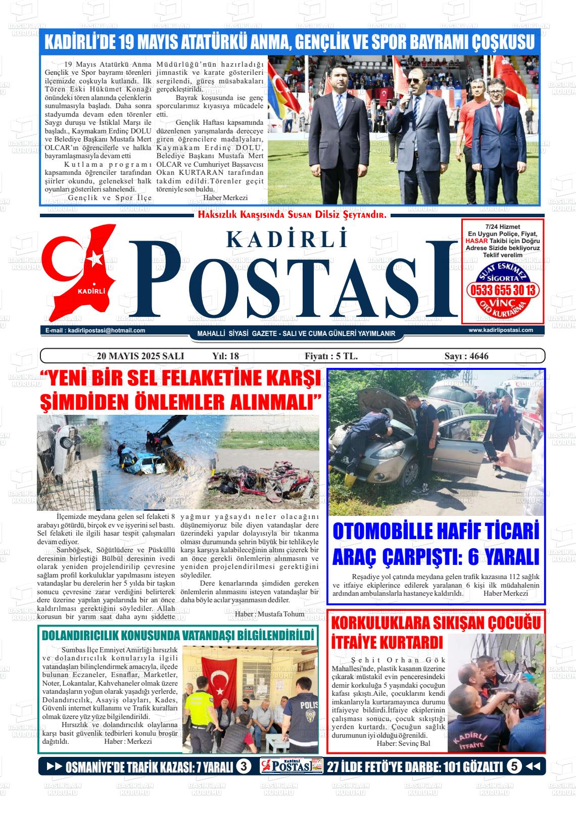 Osmanİye Yerel Gazeteleri 16 Aralık 2025, Salı Günü Manşeti