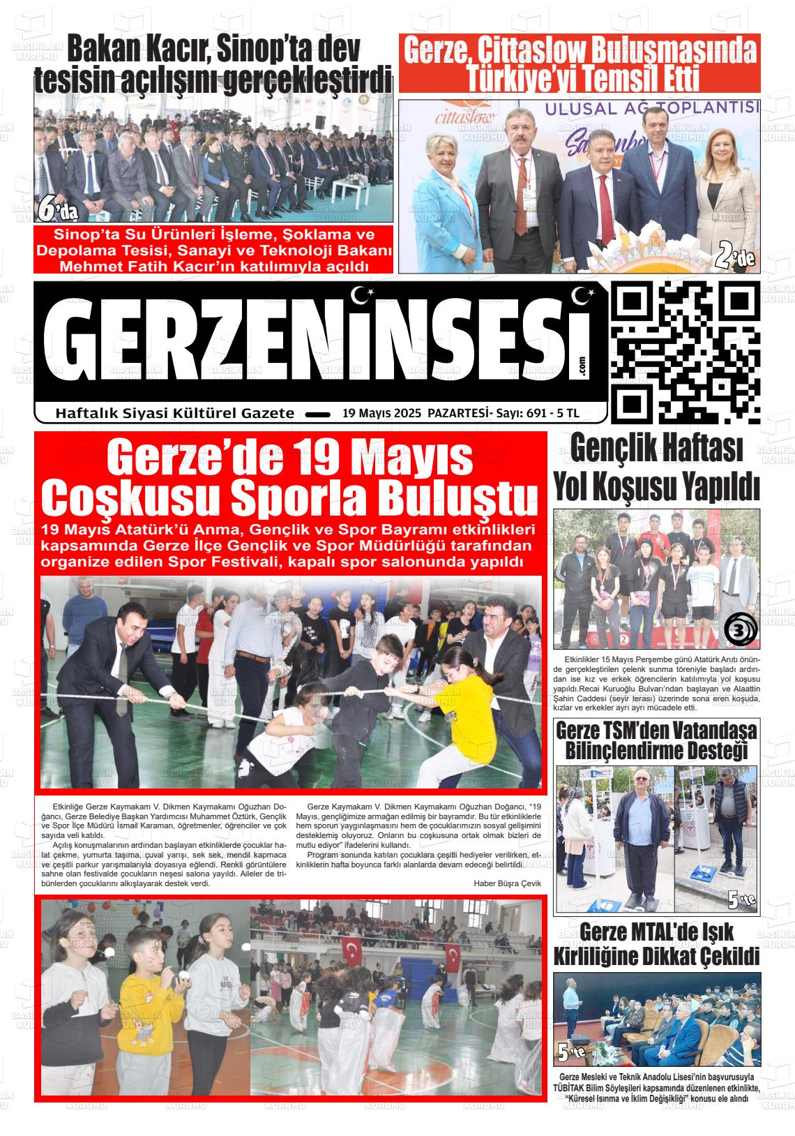 Sİnop Yerel Gazeteleri 13 Ekim 2025, Pazartesi Günü Manşeti