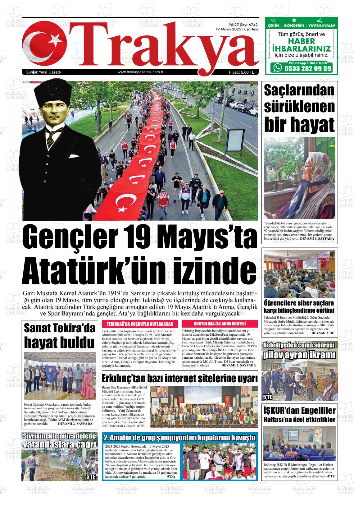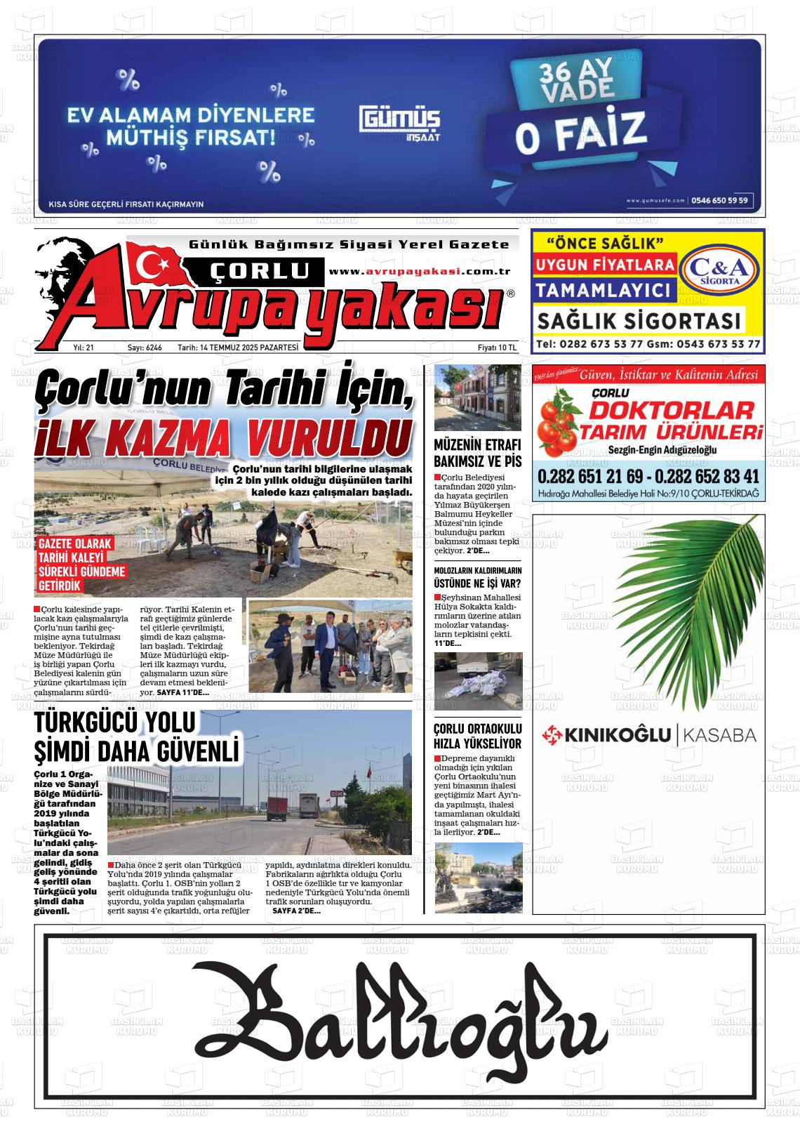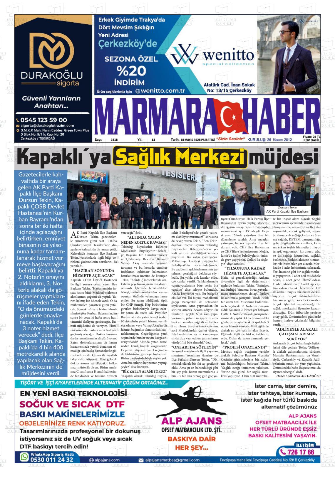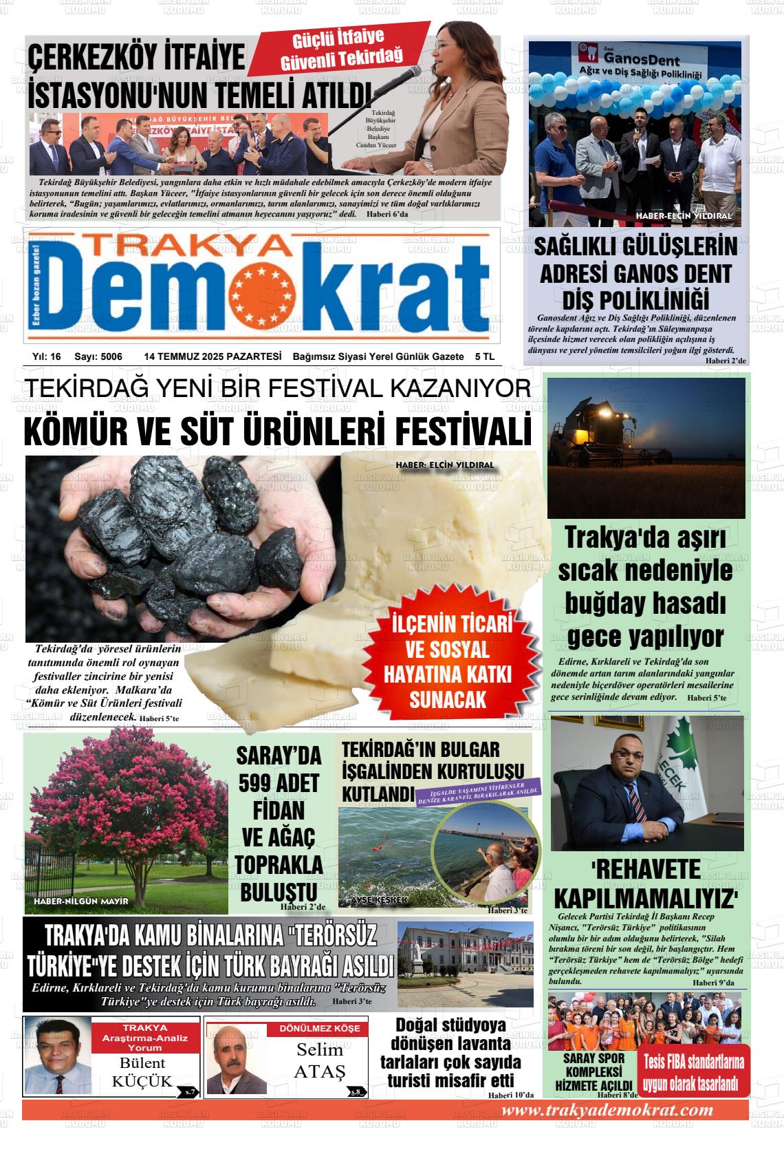 Tekİrdağ Yerel Gazeteleri 13 Ekim 2025, Pazartesi Günü Manşeti