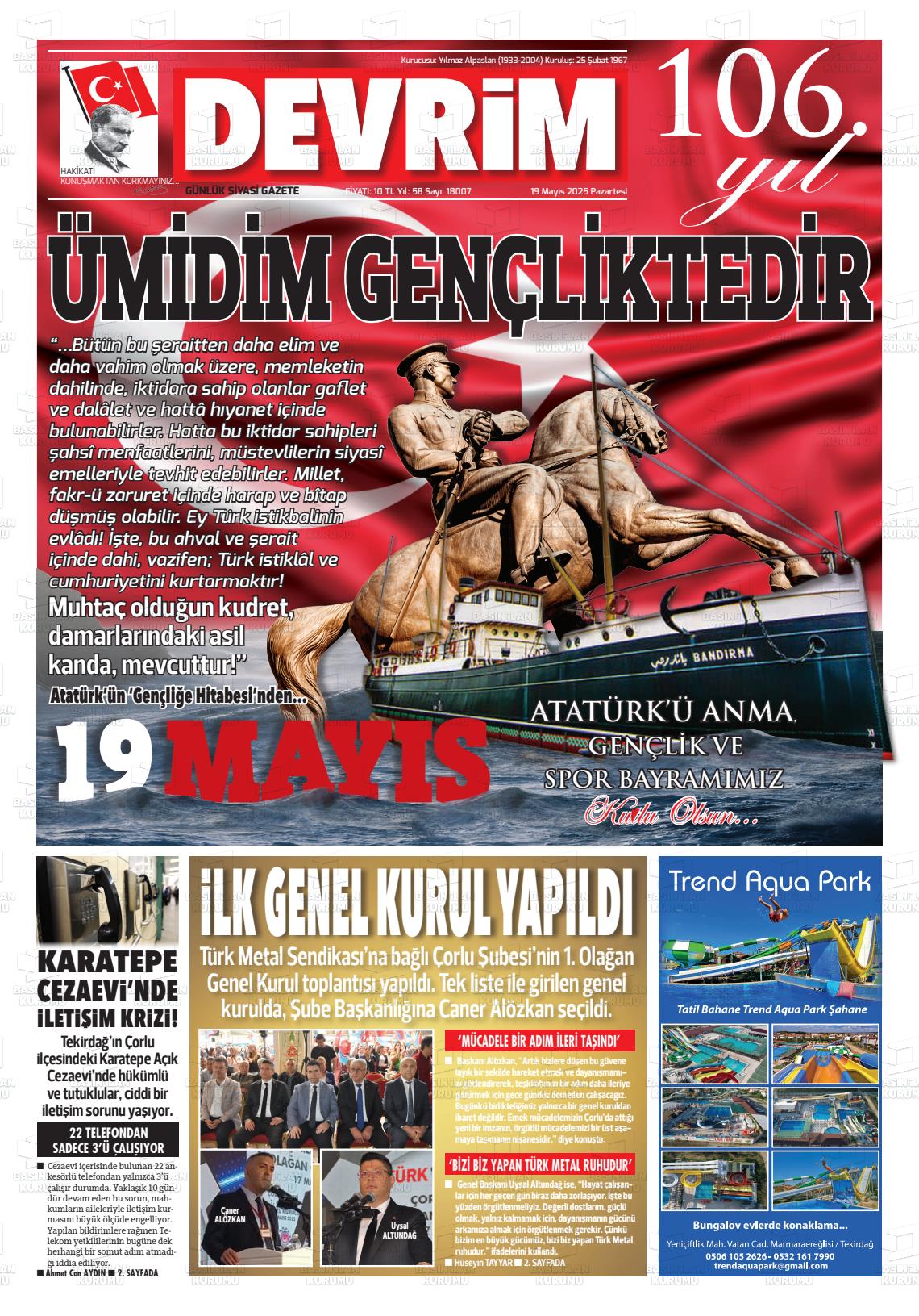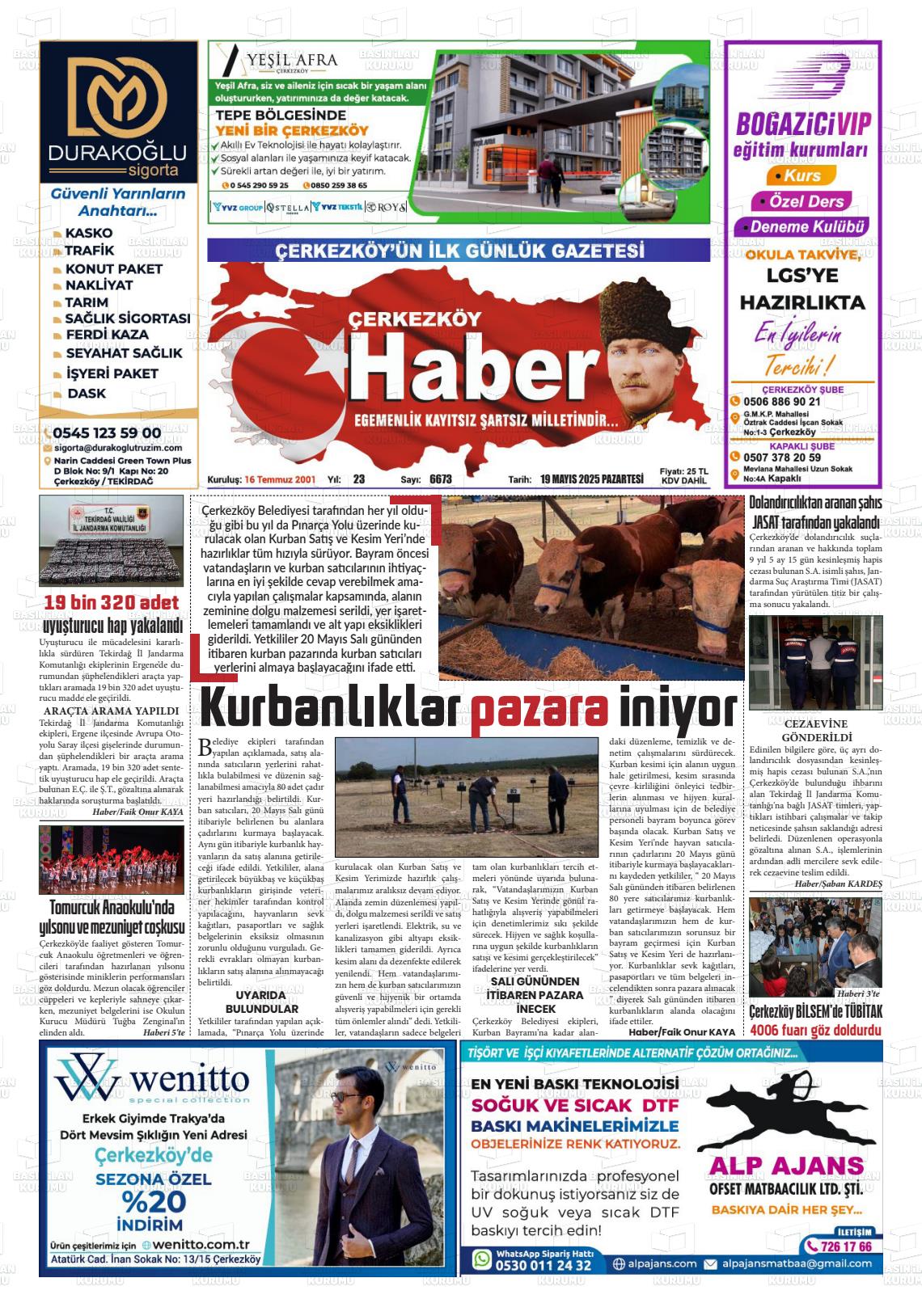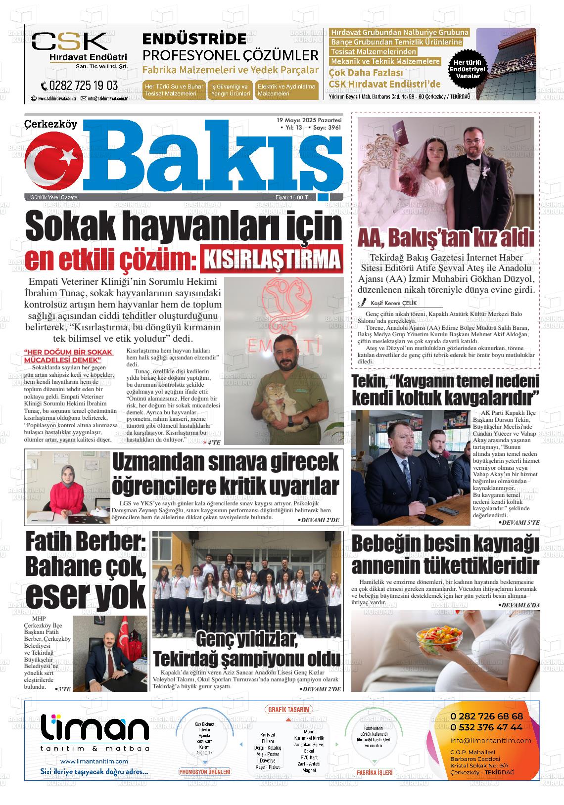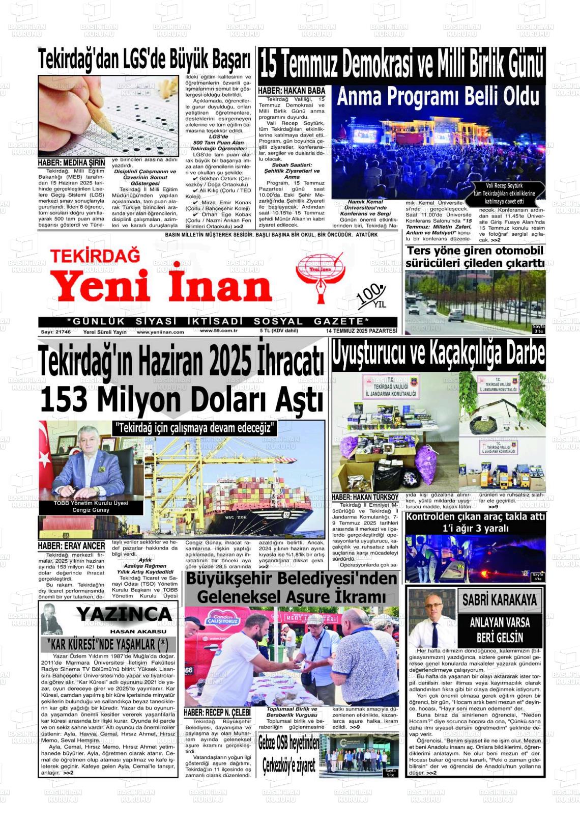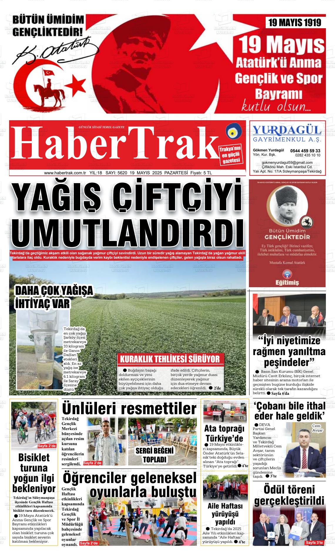 Tekİrdağ Yerel Gazeteleri 13 Ekim 2025, Pazartesi Günü Manşeti