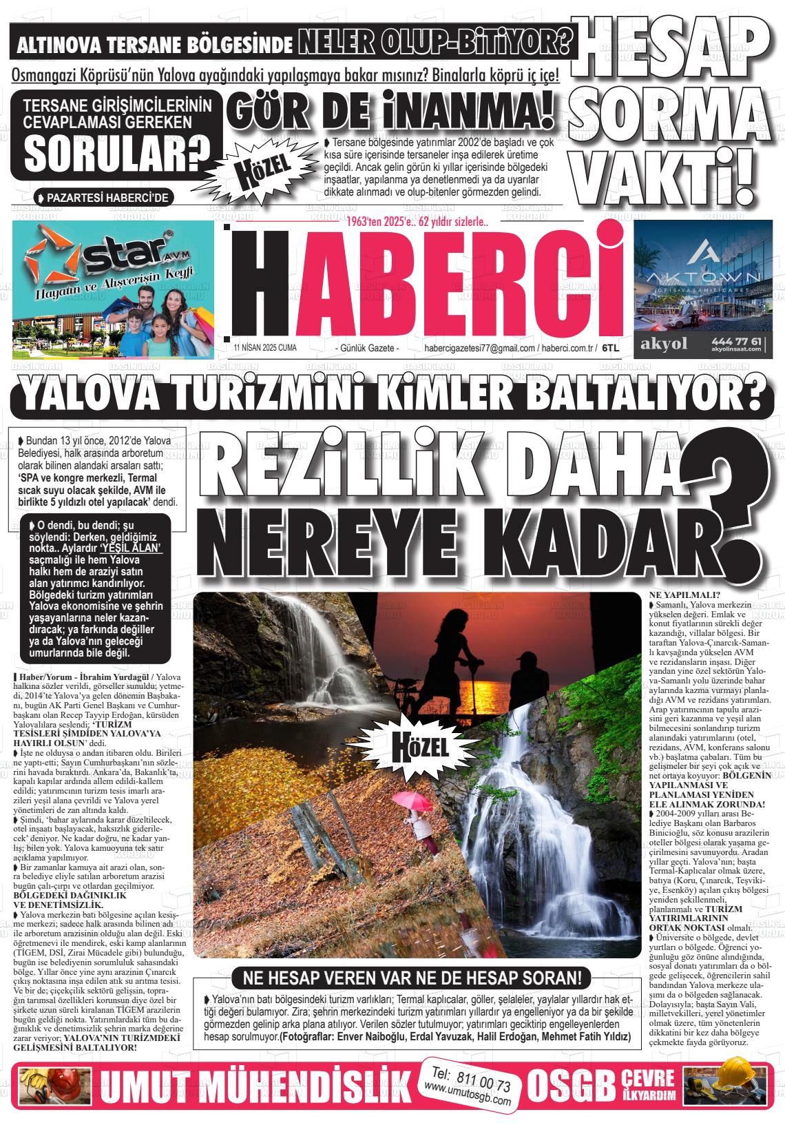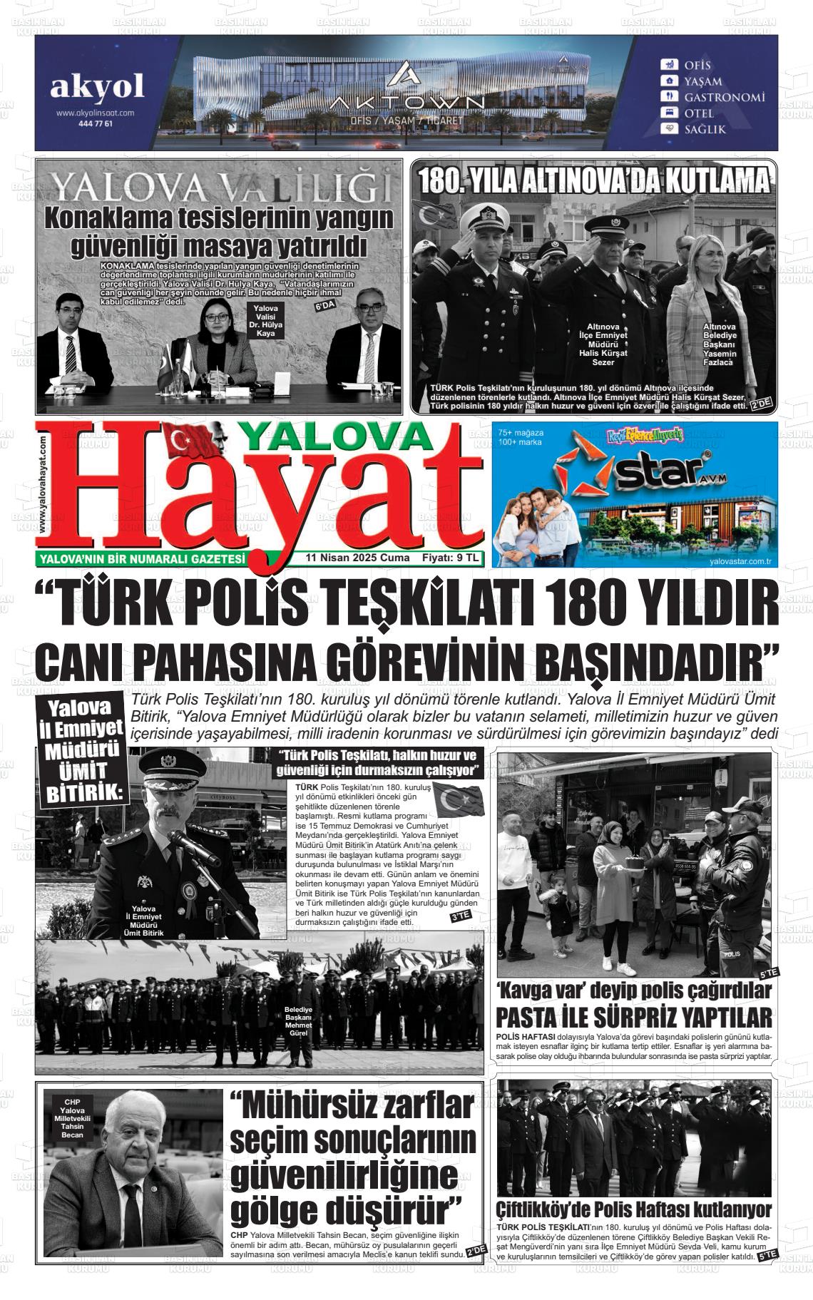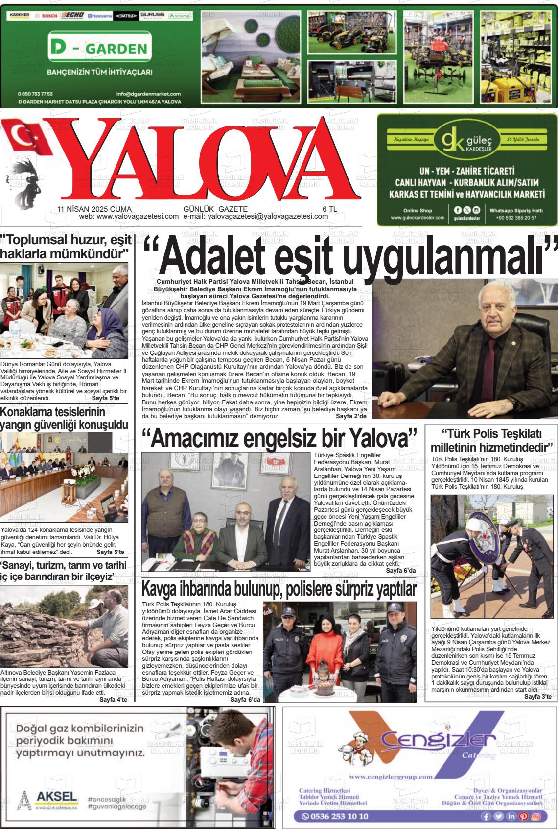 Yalova Yerel Gazeteleri 13 October 2025, Monday Günü Manşeti